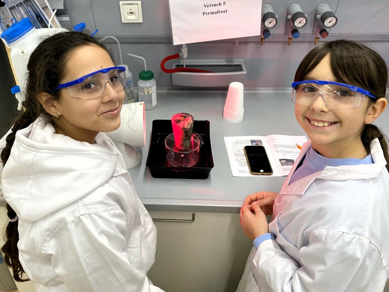 Ein weiterer Schwerpunkt war Permafrost: Anhand eines Modells wurde gezeigt, wie auftauender Boden Stabilität verliert – mit Folgen, die bis zu Hangrutschen und Lawinen reichen können. Ebenso spannend waren die Experimente zur Veränderung von Meeresströmungen: Wie stark Temperatur- und Dichteunterschiede Bewegungen im Wasser beeinflussen und warum Strömungen für das Klima eine zentrale Rolle spielen.